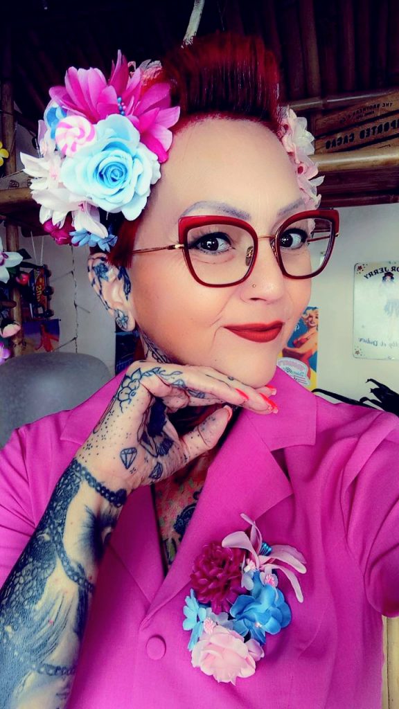 « Être pin-up, c’est embrasser sa féminité avec audace, élégance et une pointe de malice, tout en portant fièrement des fleurs dans les cheveux comme un symbole d’assurance et de glamour intemporel. »